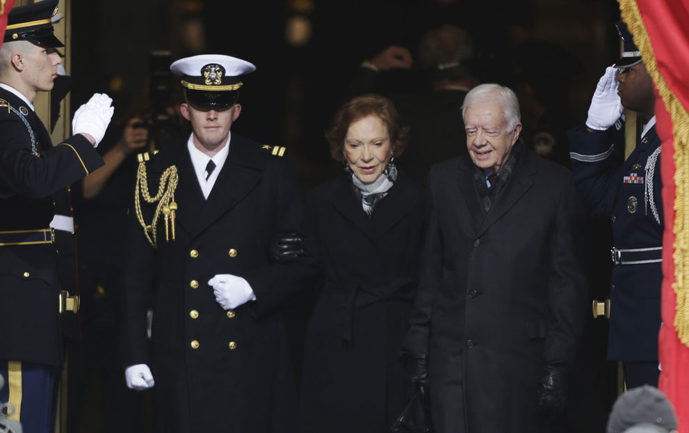 2. Former President Jimmy Carter arrives with his wife Rosalynn at the ceremonial swearing-in for President Barack Obama, on January 21, 2013.