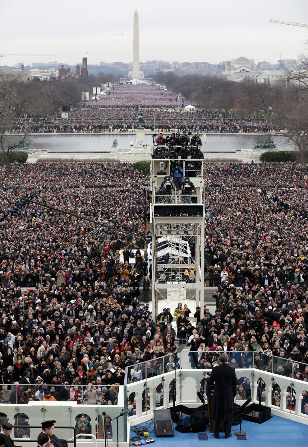 7.Looking out over a crowd of hundreds of thousands, President Barack Obama gives his inauguration address, on January 21, 2013 in Washington, D.C. (Rob Carr/Getty Images)